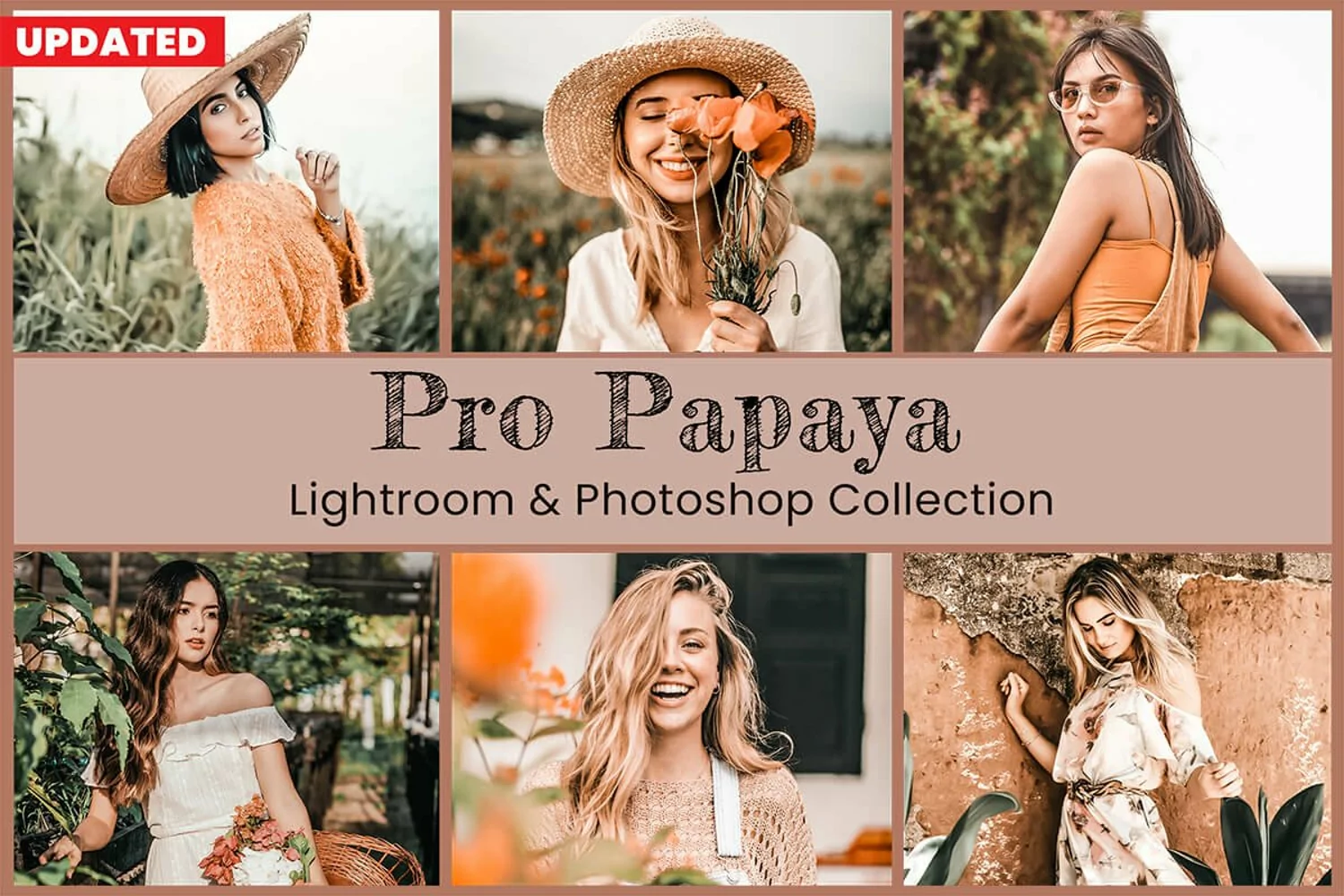 15 Pro Papaya Photoshop Actions ACR Presets Lightroom Presets Desktop Lightroom Mobile Presets Tropical Presets Instagram Filter For Lifestyle Bloggers Summer Hawaii Green Outdoor Photography Travelers Bali Adventures Influencer color Correction Photo Editing