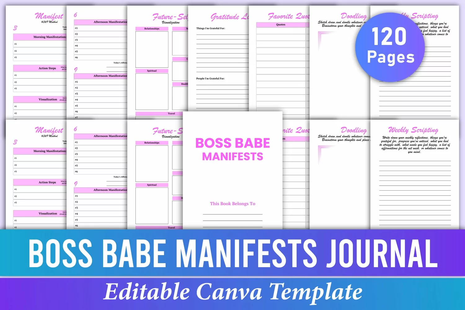Editable Boss Babe Manifests Journal Canva Interior