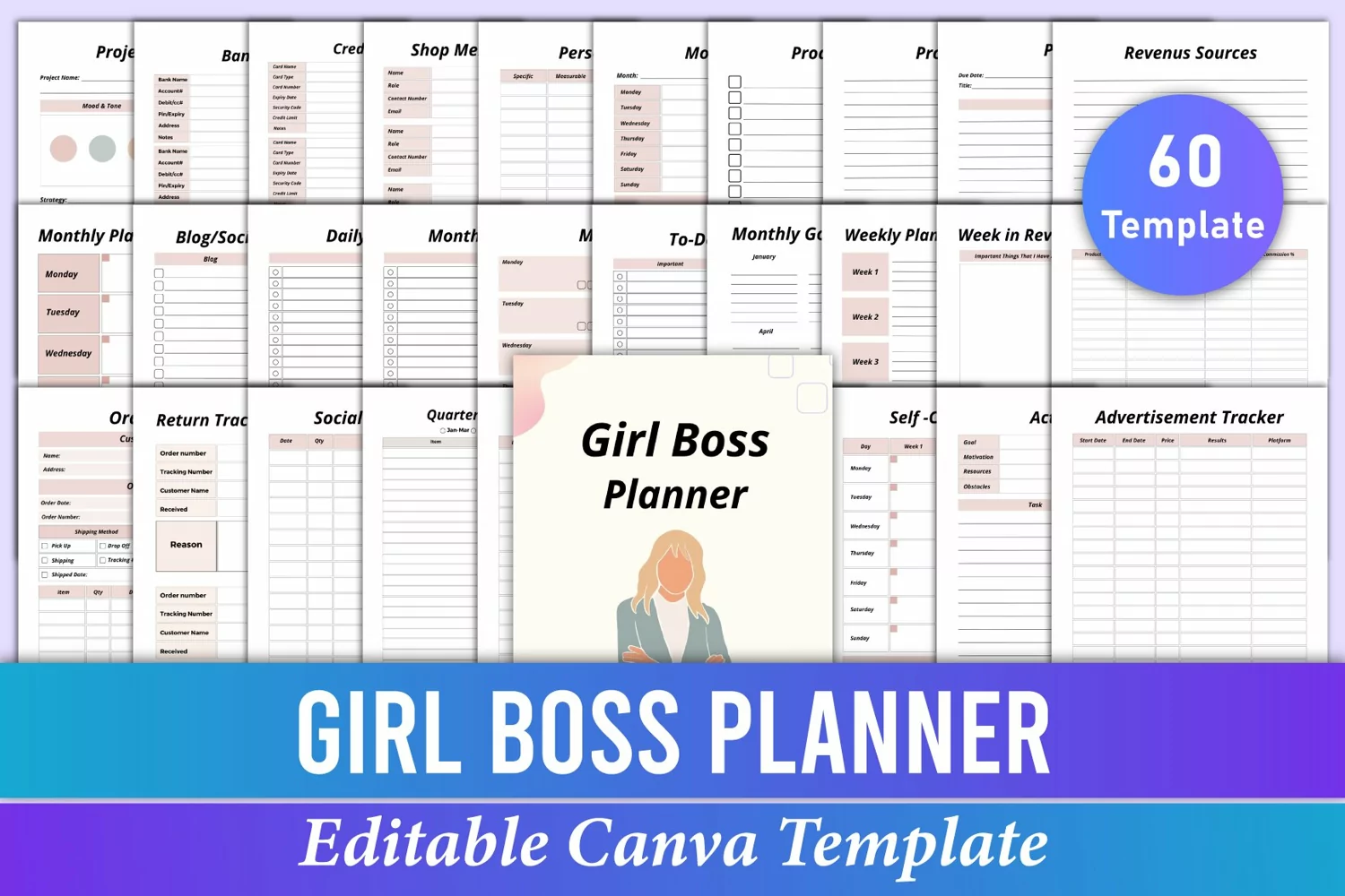 Similar Design Products to Editable Girl Boss Planner Canva Template