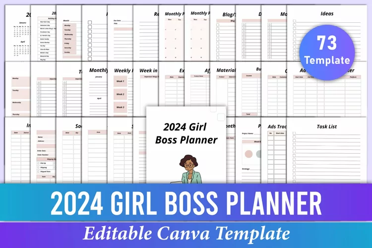 2024 Girl Boss Planner for Canva Template .Each Template is Editable on Canva so you can change text, colors, fonts, and layout style.Editable Canva Link you can Customize it based on your requirement.