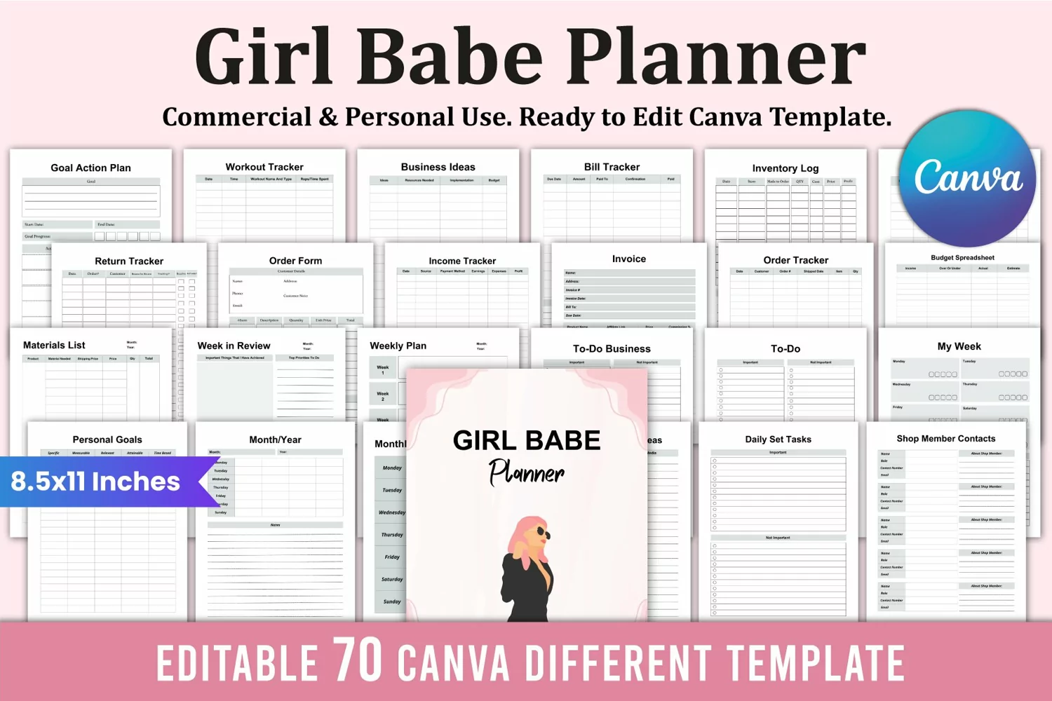 Editable Girl Babe Planner For Canva Kdp Interior, Editable Canva Link you can Customize it based on your requirement. You will receive high quality print ready PDF File with JPG File & PNG File. Ready to home and office or shop use.