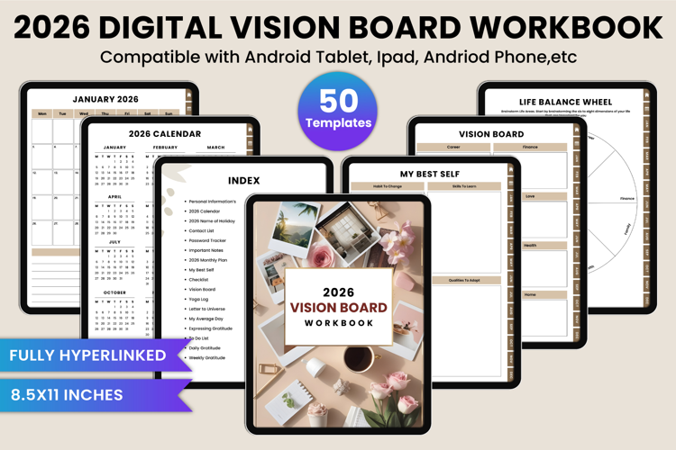 2026 Digital Vision Board Workbook Canva Template