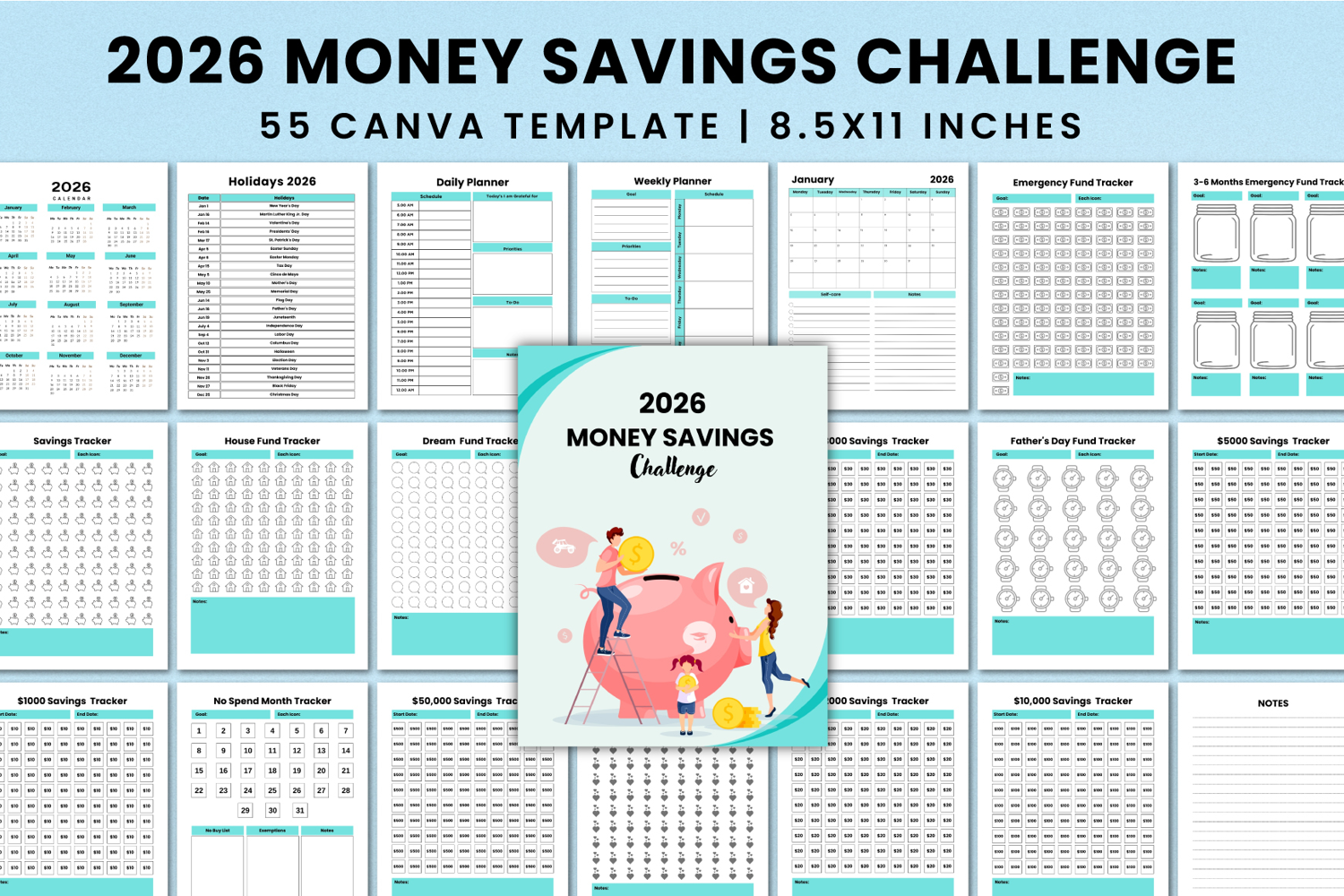 Similar Design Products to 2026 Money Savings Challenge Canva Template