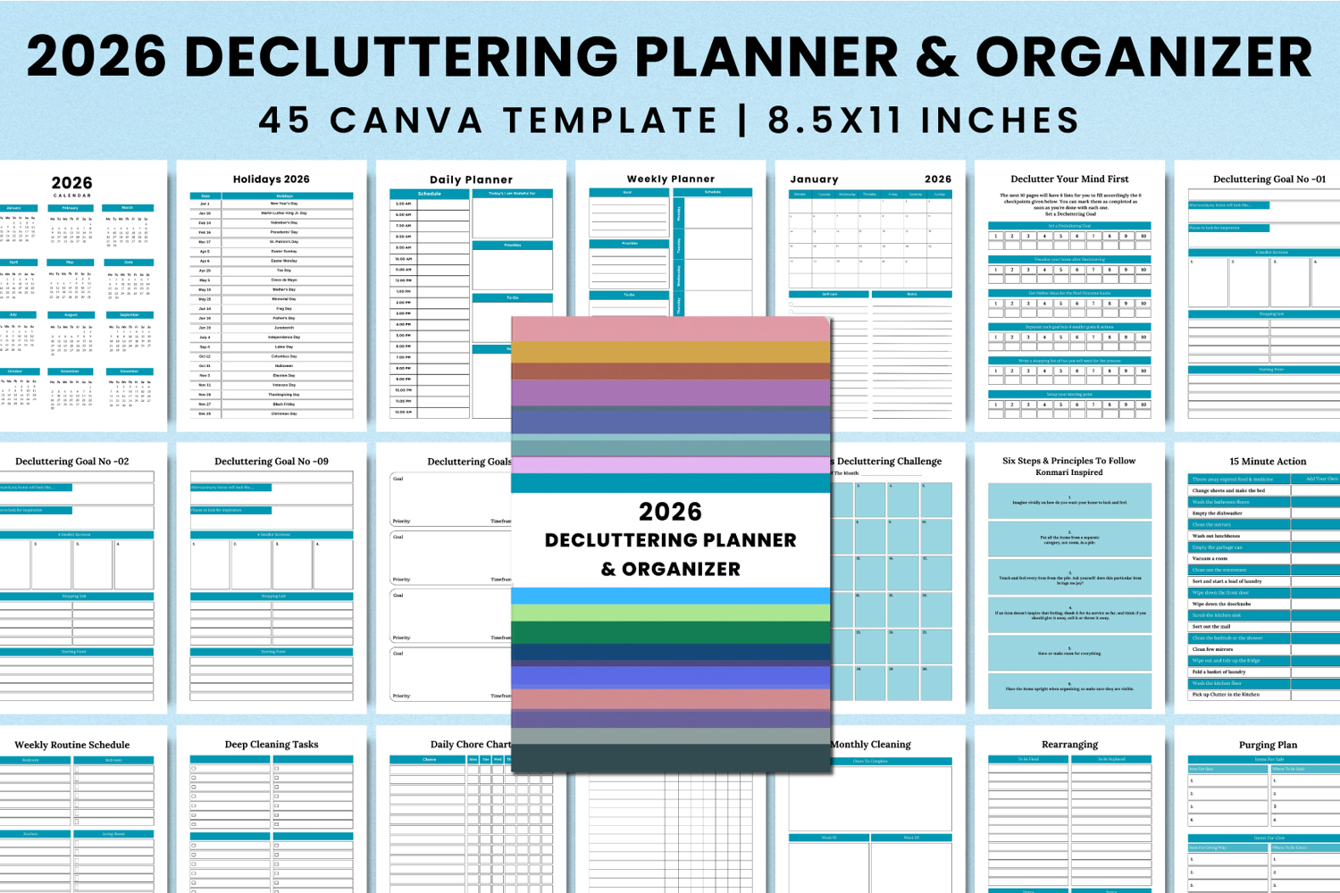 2026 Decluttering Planner & Organizer For Canva Interior, Editable Canva Link you can Customize it based on your requirement You have the flexibility to modify text, colors, fonts, size, and layout style according to your preferences. Rest Assured, you’ll receive high-quality templates for your convenience.
