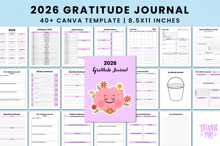 Editable 2026 Gratitude Journal For Canva KDP Interior,The Canva Planner will help ease your way into the planner/printable sphere and give