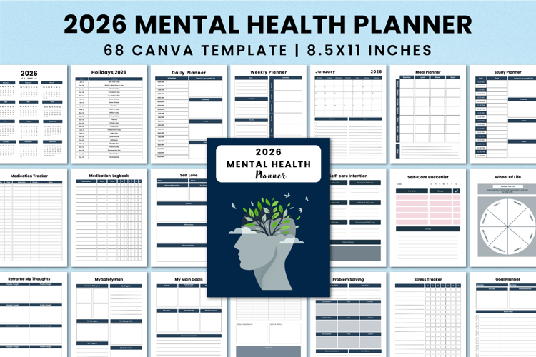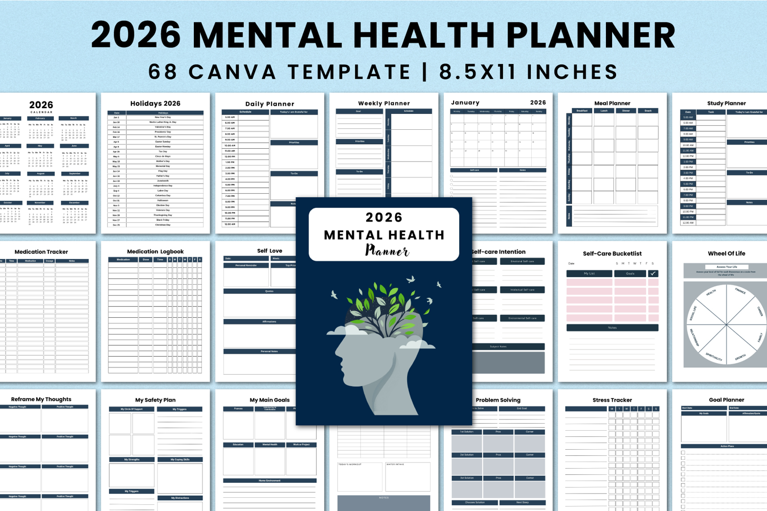 Editable 2026 Mental Health Planner Canva Interior, Editable Canva Link you can Customize it based on your requirement. You have the flexibility to modify text, colors, fonts, size, and layout style according to your preferences. Rest Assured, you’ll receive high-quality templates for your convenience.