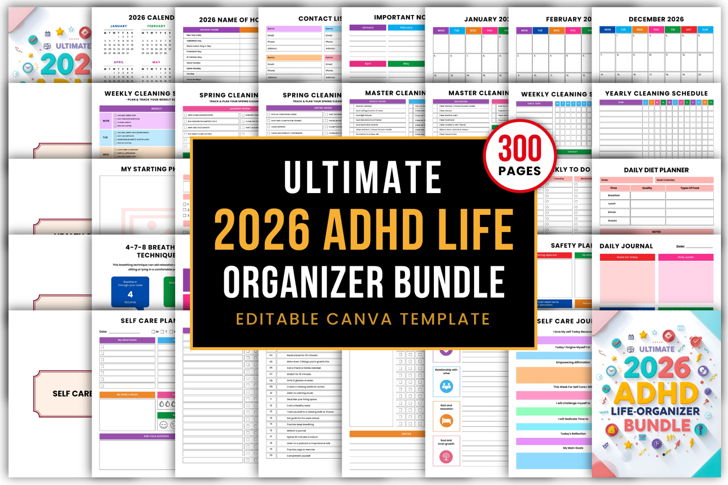 Ultimate 2026 ADHD Life Organizer Bundle Canva Interiors ✨