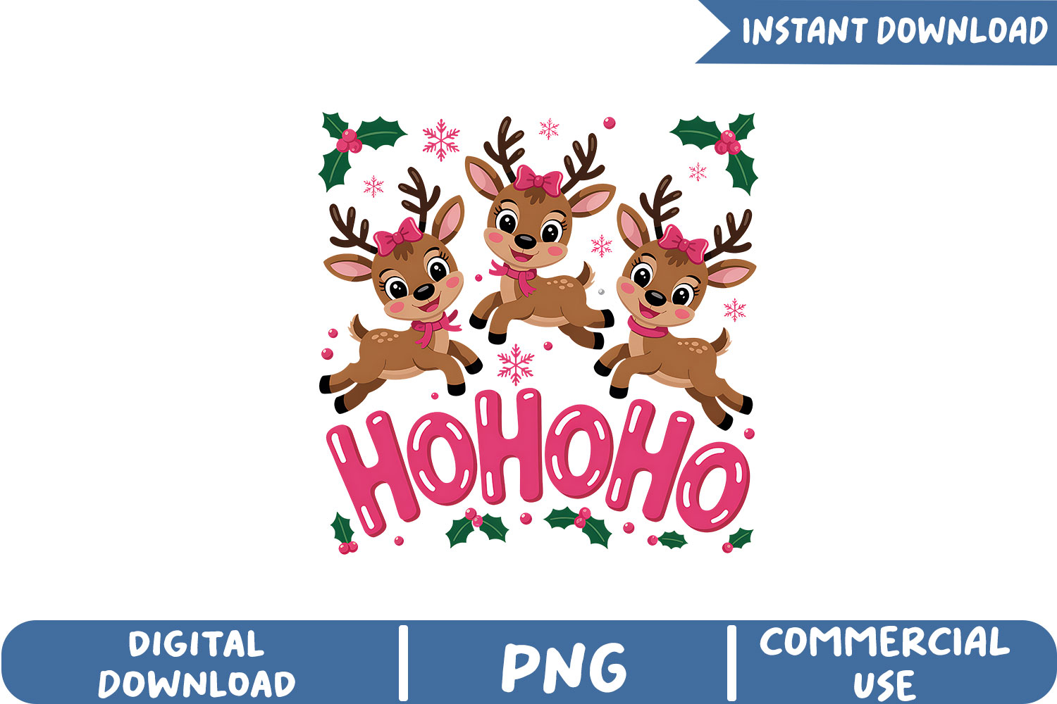 Cute Reindeer Ho Ho Ho Christmas Sublimation, Christmas Png example image 1