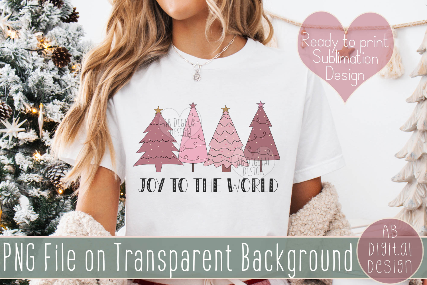 Christian Christmas PNG sublimation design featuring Pink Christmas tree illustrations. Perfect for creating fun crafts for the festive season!