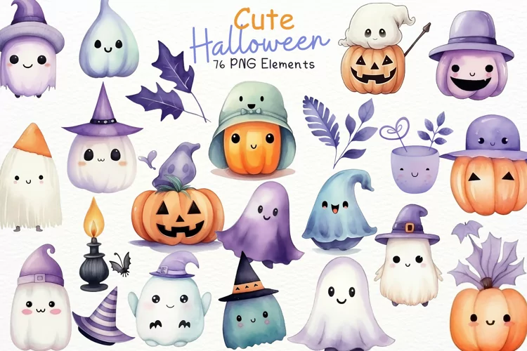 Cute Halloween Watercolor 76 Cliparts Ai Generated Art