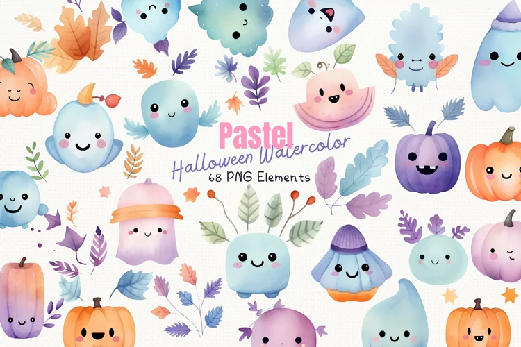 Pastel Halloween Watercolor 68 Cliparts Ai Generated Art example image 1