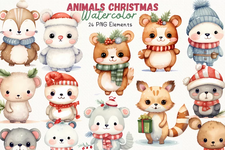 Similar Design Products to Animals Christmas Watercolor 26 Cliparts Collection