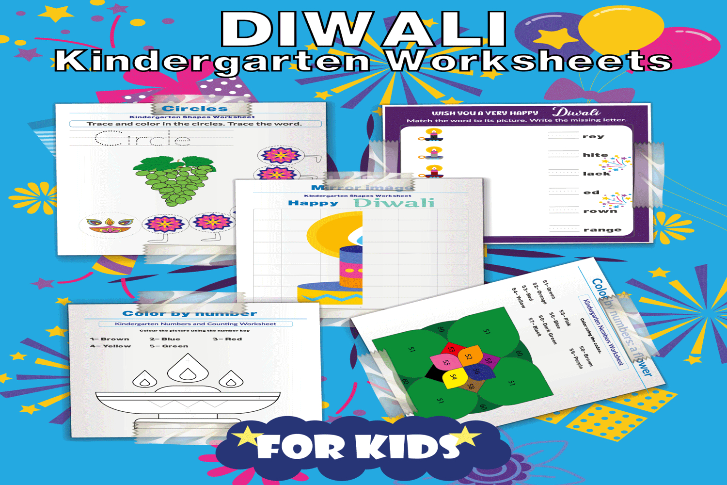 Celebrate the Festival of Lights with this fun and educational Diwali-themed worksheet pack for Kindergarten!