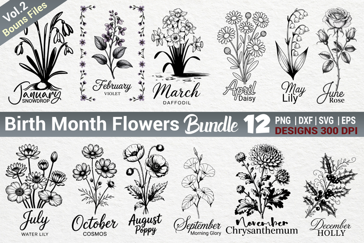 Birth Month Flowers SVG PNG Bundle Vol.2