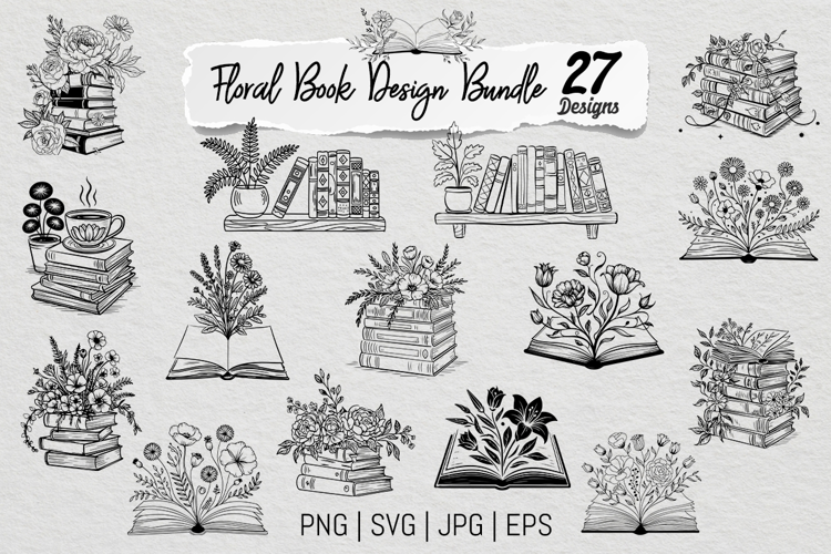 Floral Book Svg Png Jpg Eps Clipart Bundle Hand Drawn Book With Flowers Digital Art Set Botanical Floral Book Illustration Pack Vintage Reading Flower Design Bundle Aesthetic Floral Book Clipart For Cricut Romantic Book And Flower Svg Collection Botanical Book Lover Graphic Design Set Floral Library And Reading Clipart Bundle Hand Drawn Floral Book Art Bundle For Crafts Vintage Flower Book Vector Design Pack