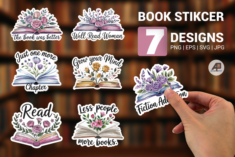 Similar Design Products to Watercolor Book Sticker with Flowers Bundle