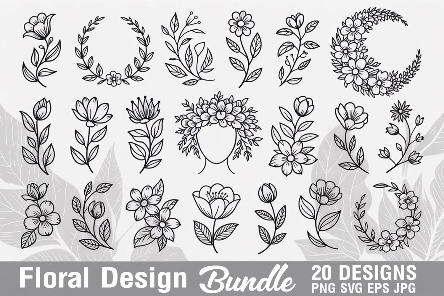 Black And White Floral Line Art Bundle Botanical Outline Svg And Png Pack Minimalist Flower Clipart Collection Floral Doodle Illustration Set Monochrome Botanical Graphics Bundle Elegant Floral Vector Design Pack Flower Silhouette And Outline Pack Hand Drawn Botanical Element Bundle Floral Drawing Decorative Pack Floral Frame And Border Line Art Set