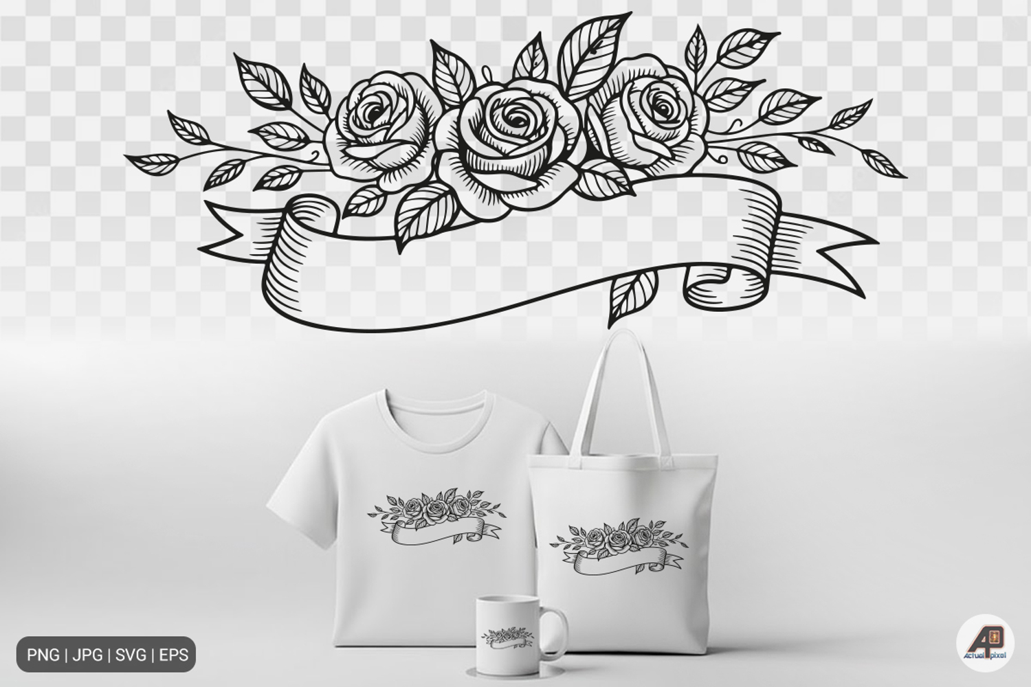 Rose Floral Ribbon Banner SVG PNG example image 1