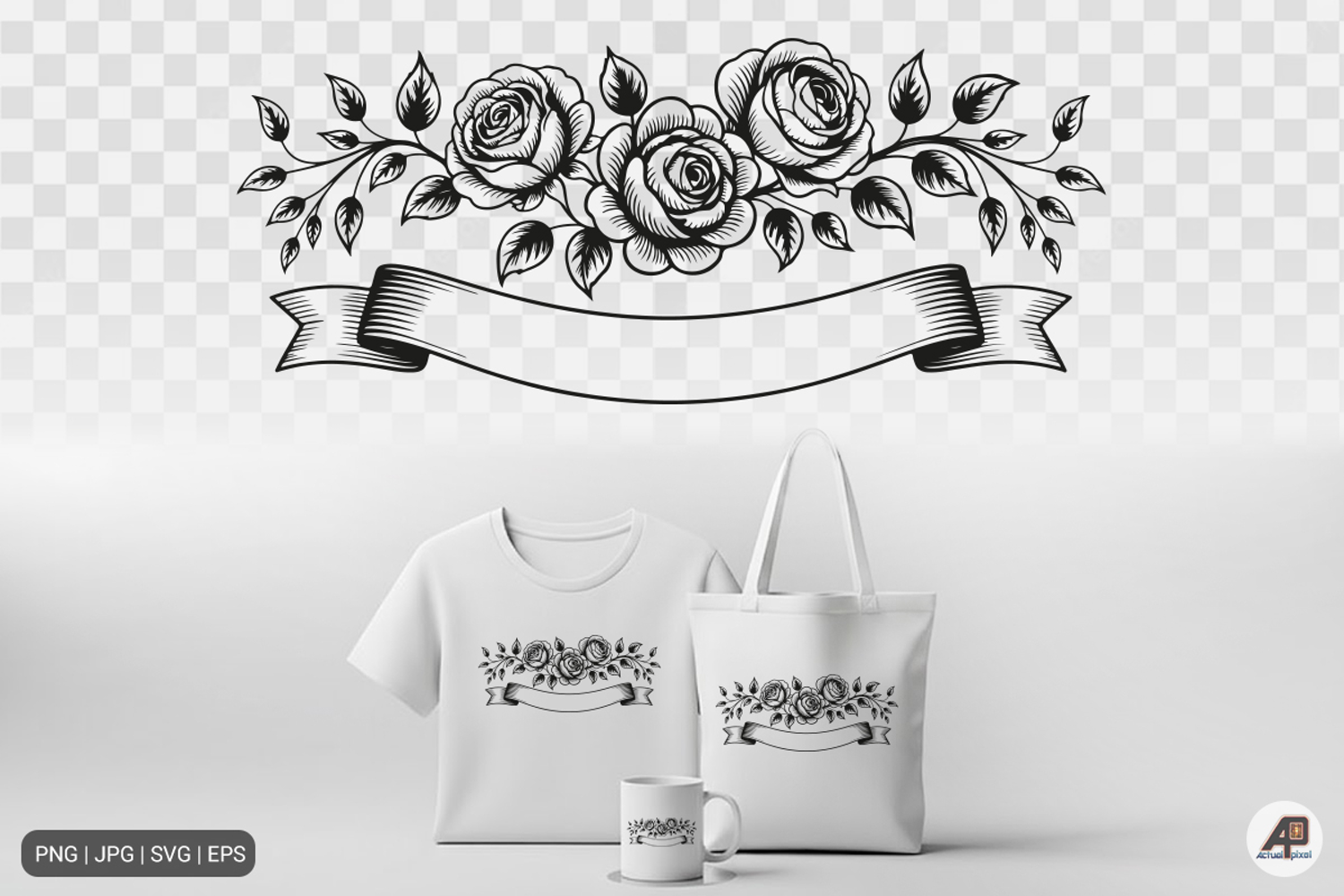 Rose Floral Ribbon Banner SVG PNG example image 1