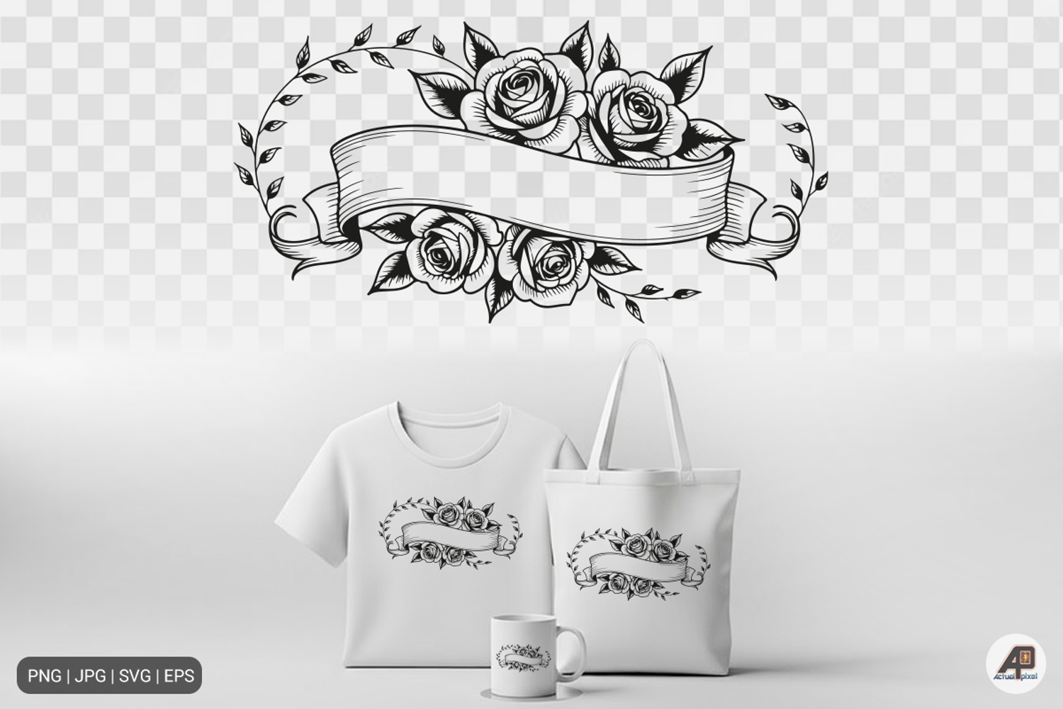 Rose Floral Ribbon Banner SVG PNG example image 1