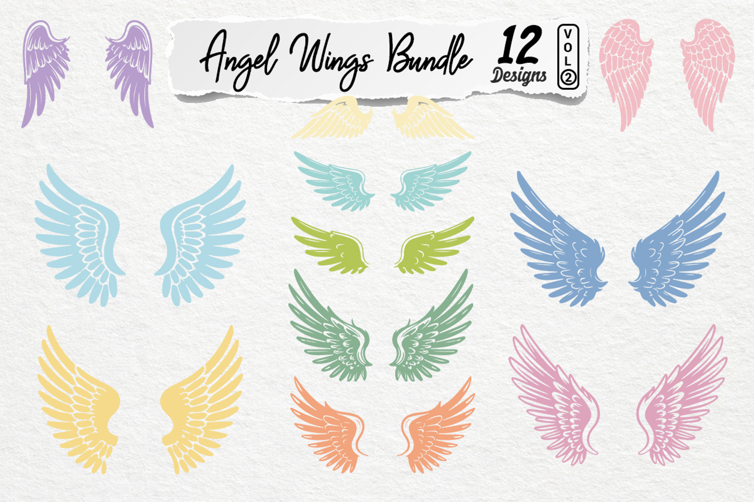 Simple Angel Wings Clipart Bundle