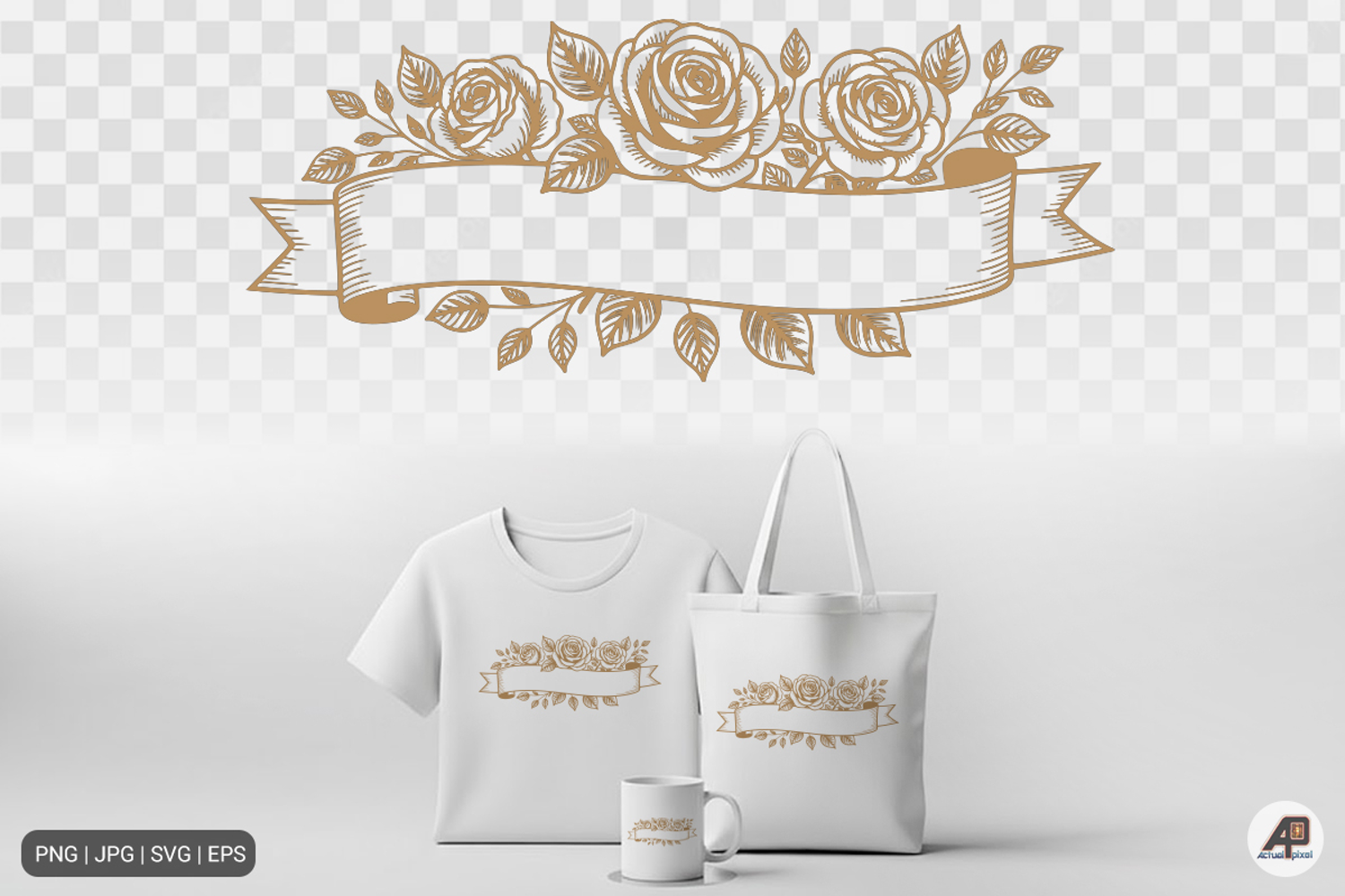 Rose Floral Ribbon Banner SVG PNG
