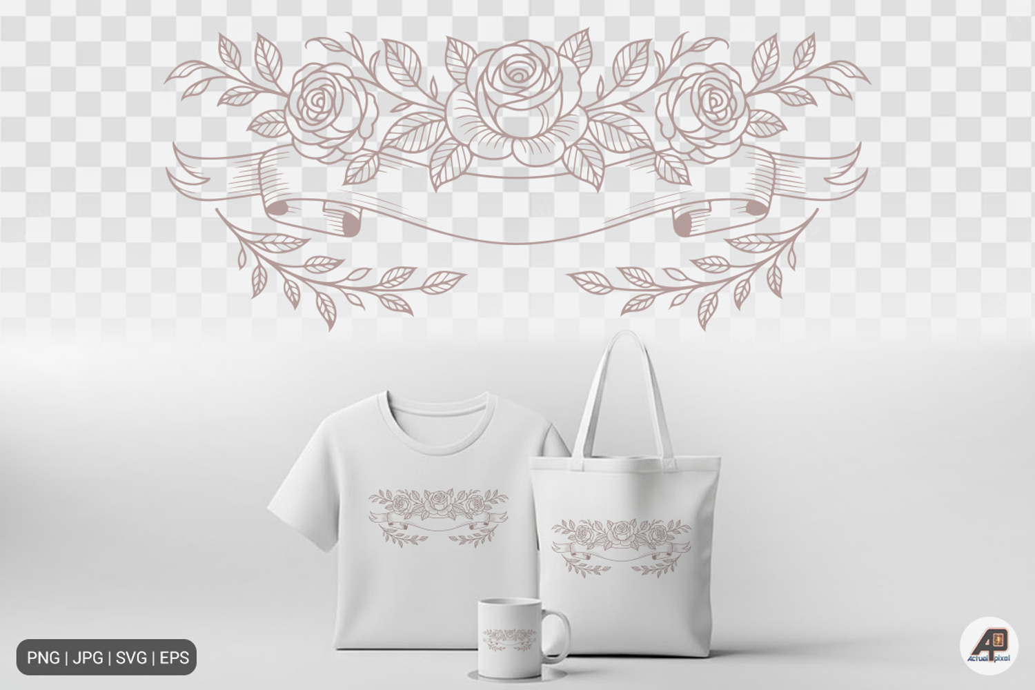 Rose Floral Ribbon Banner SVG PNG example image 1