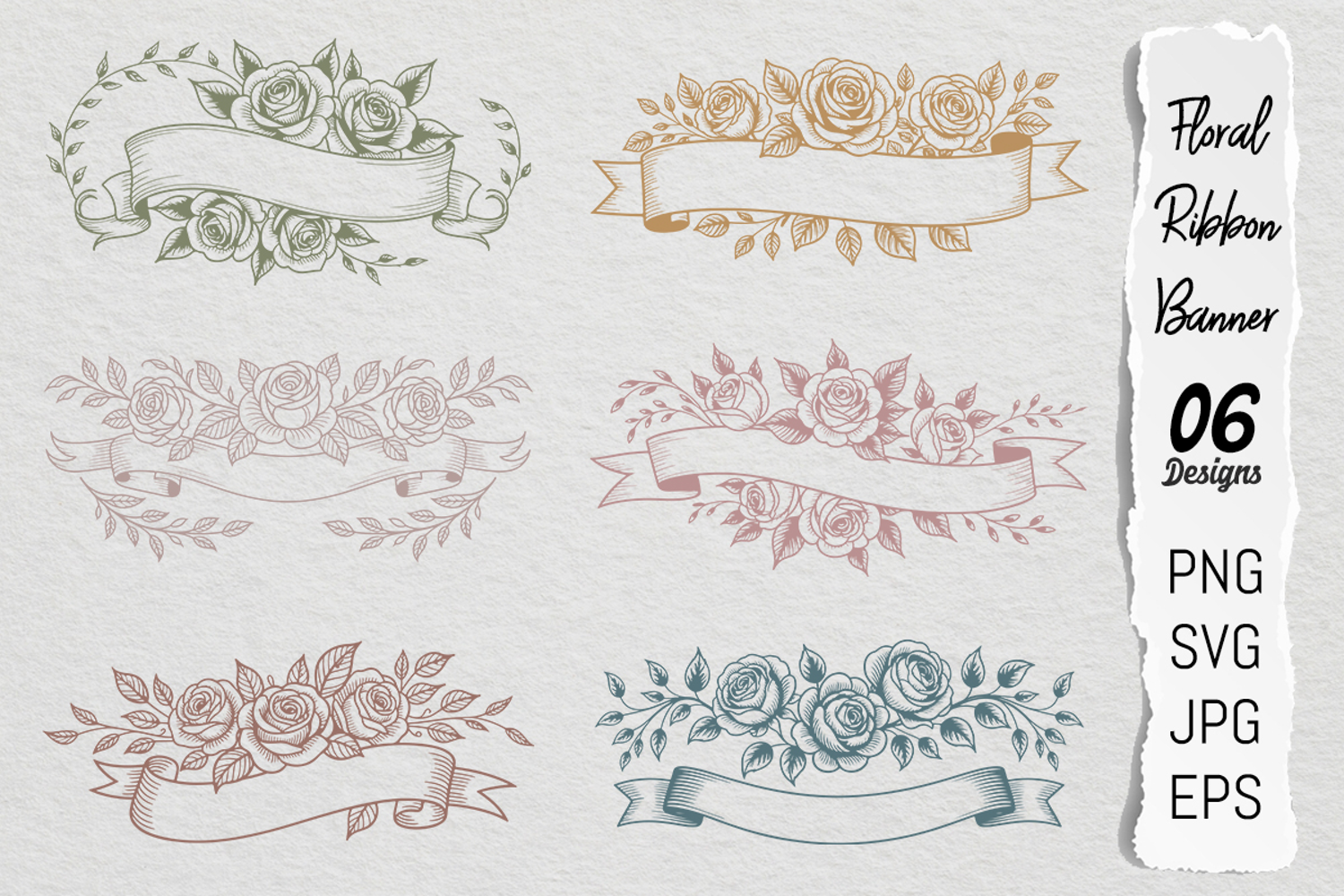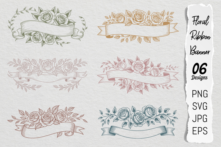 Rose Floral Ribbon Banner SVG PNG Bundle