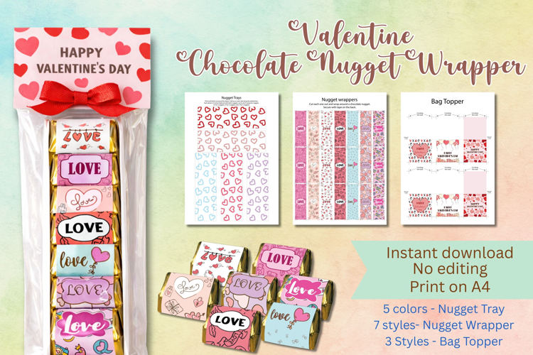A complete printable bundle designed to fit chocolate nuggets perfectly: