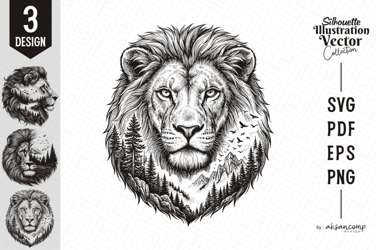 Animal Svg Lion Silhouette Forest Silhouette Mountain Landscape Lion Vector Nature Vector Wildlife Illustration Lion Line Art Roaring Lion Double Exposure Animal