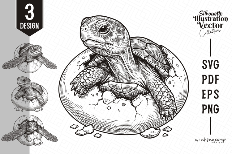 This bundle includes 3 different turtle hatching poses, ideal for adding variation to your creative work. Designed with precision, each element is easy to trace and fully scalable without losing quality.