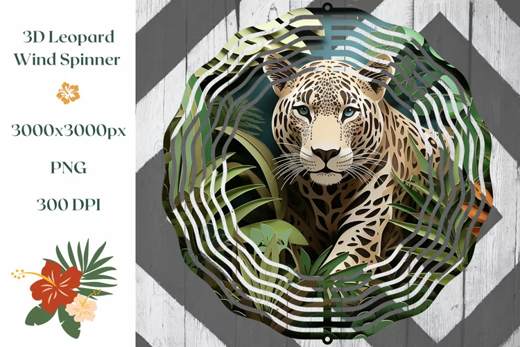 3D Tropical Wind Spinner Sublimation. Colorful sublimation design with gorgeous 3D Leopard.