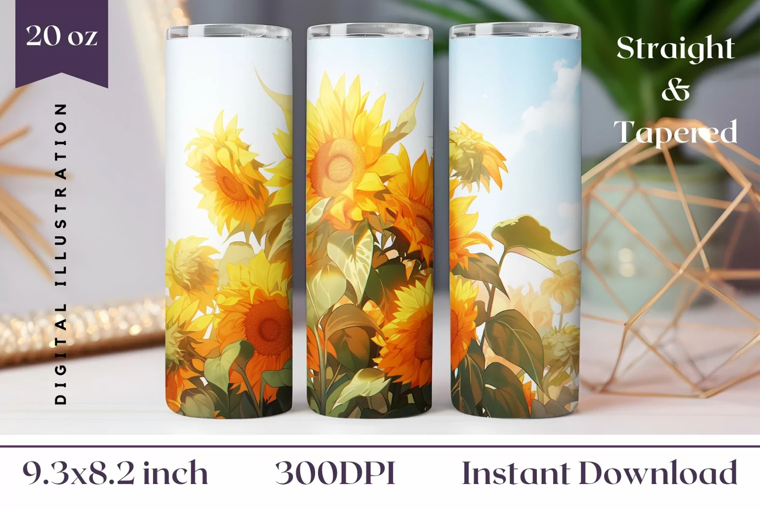 Fall Sublimation Tumbler Wrap. Colorful sublimation design with gorgeous Sunflowers Field.