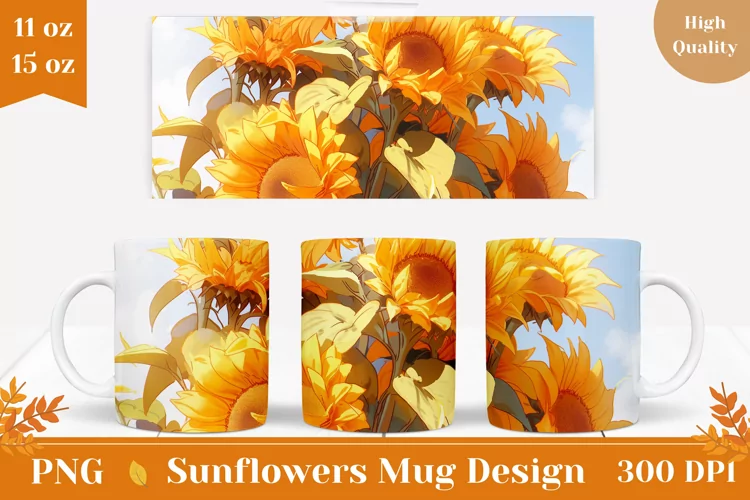 Sunflowers Mug Sublimation Design, Fall Sublimation Design