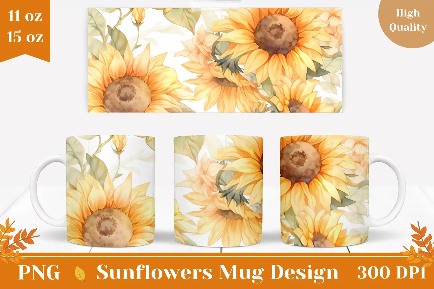 Watercolor Sunflowers Mug Design, Fall Sublimation Design example image 1