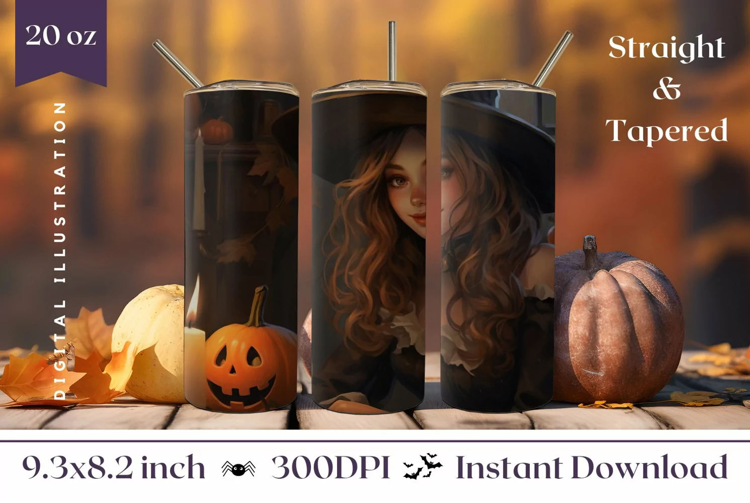 Halloween Witch Tumbler Wrap Design, Halloween Sublimation