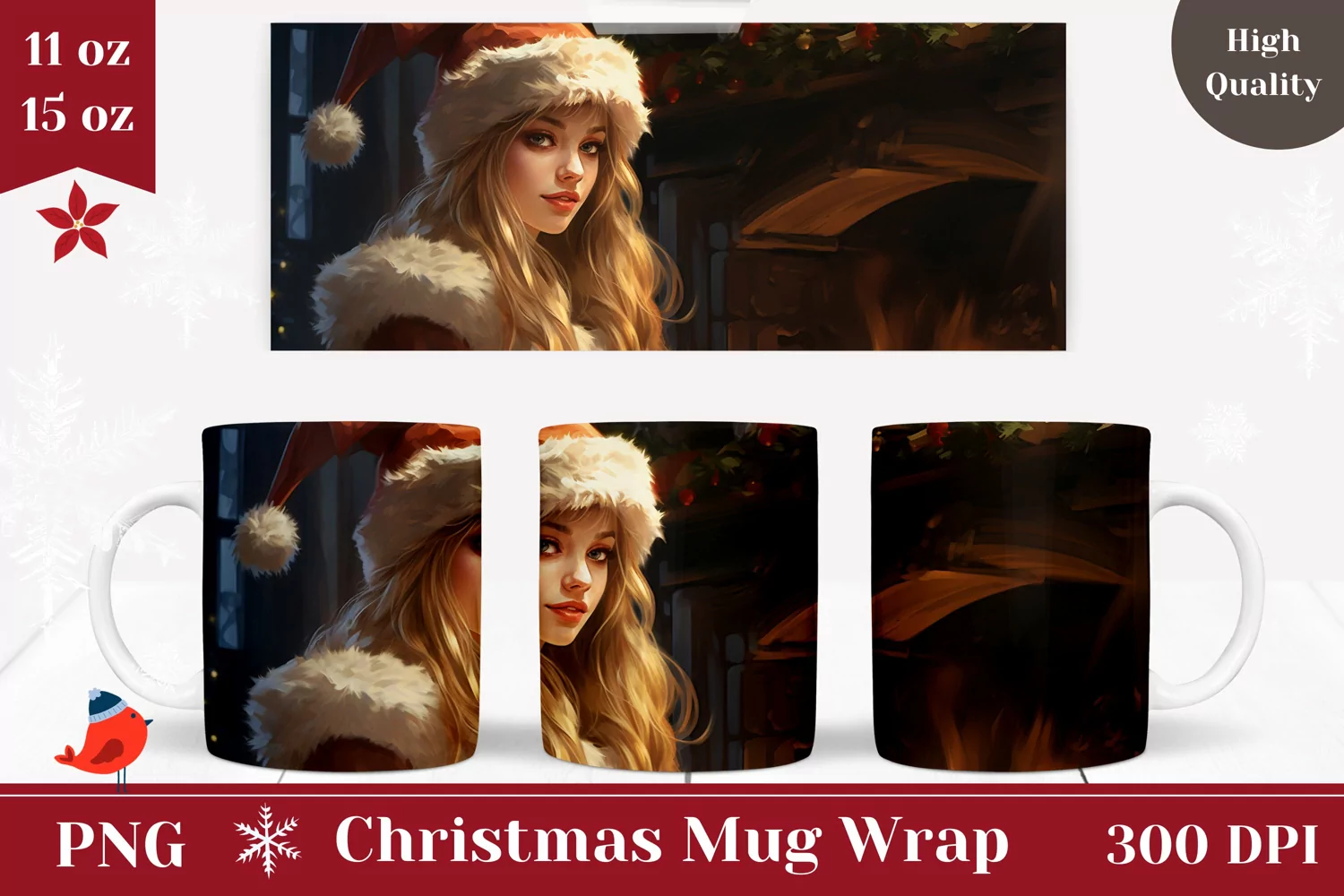 Christmas Girl Mug Wrap Design, Christmas Girl Coffee Cup example image 1