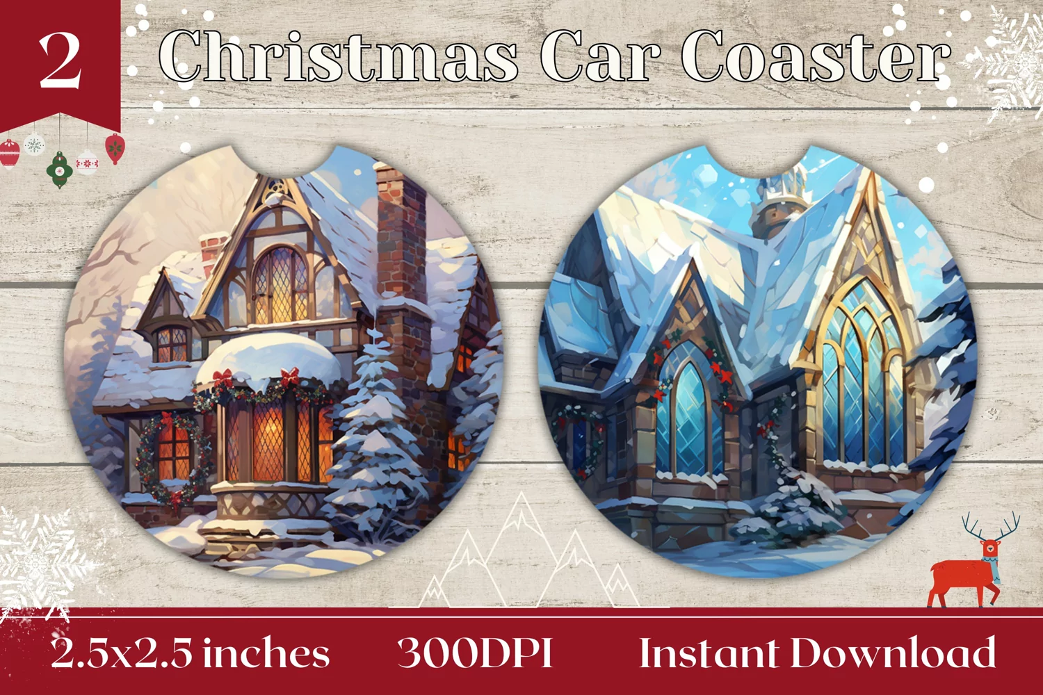 Christmas Car Coaster, Christmas House Sublimation Design