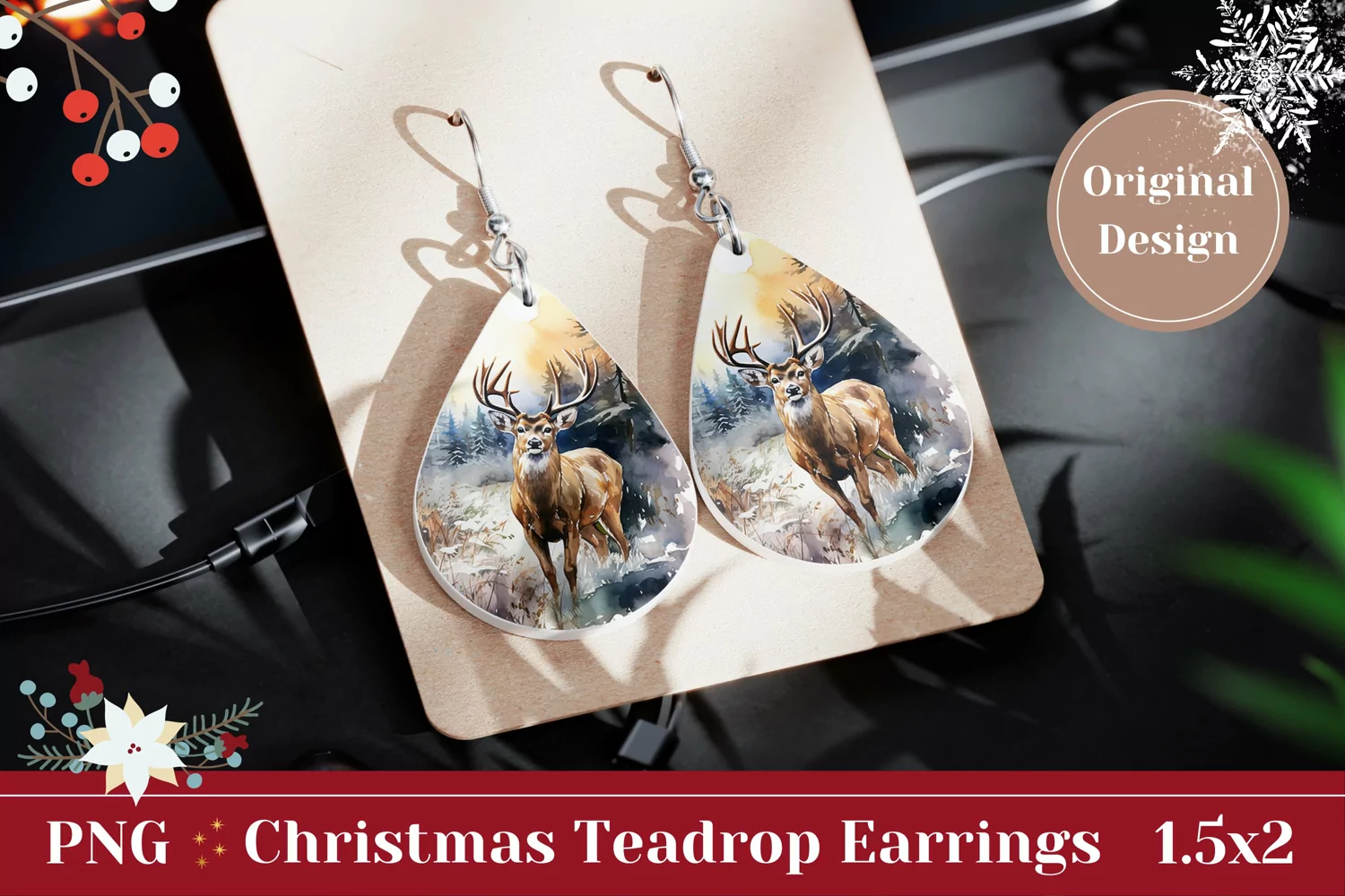 Similar Design Products to Christmas Earrings Sublimation , Winter Deer Sublimation PNG