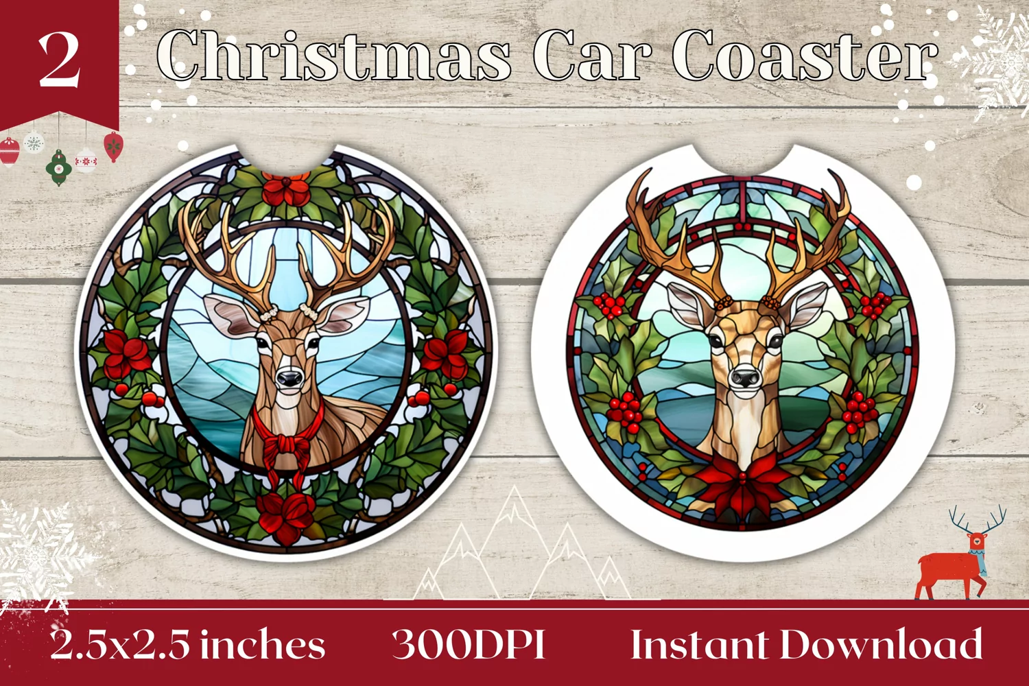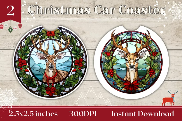 Stained Glass Christmas Car Coaster, Christmas Deer Coaster example image 1