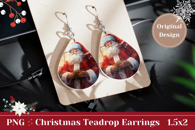 Christmas Earring Sublimation , Santa Claus Sublimation PNG example image 1