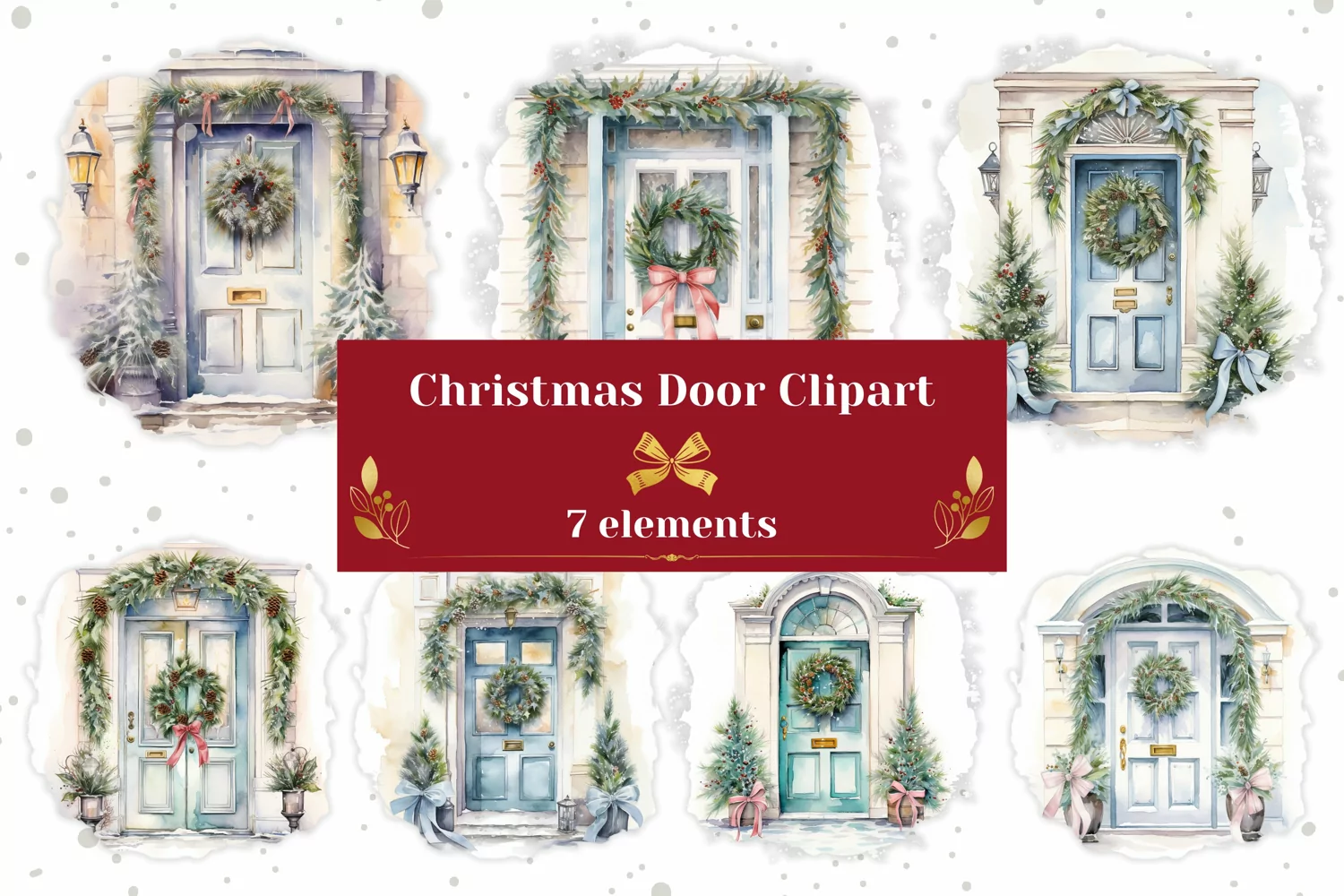 Similar Design Products to Watercolor Christmas Doors Clipart, Christmas Clipart PNG