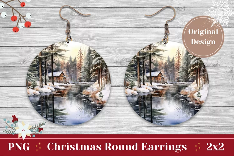 Christmas Sublimation Christmas Earrings Earring Sublimation Design Christmas Earring Sublimation Christmas Forest Sublimation Winter Forest Sublimation Watercolor Forest Sublimation Christmas Round Earring Winter Forest Earring Watercolor Christmas Earring
