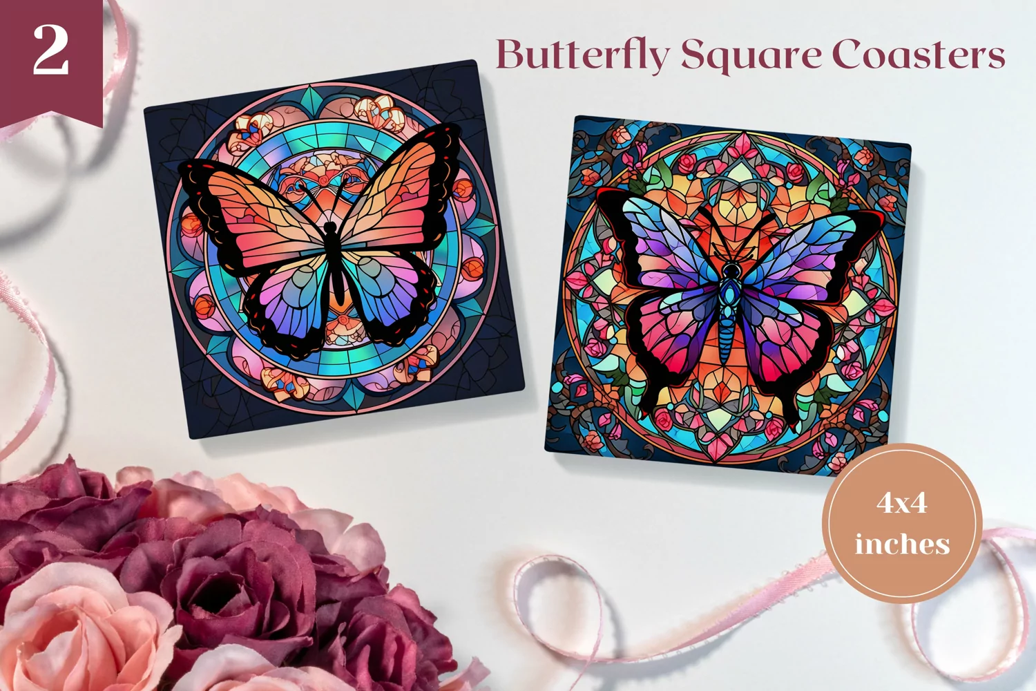 Stained Glass Coaster Sublimation Designs. Easy to size to your coasters diameter for sublimation.