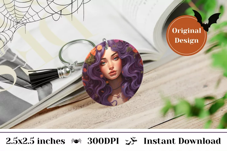 Colorful Witch Keychain Sublimation Design.