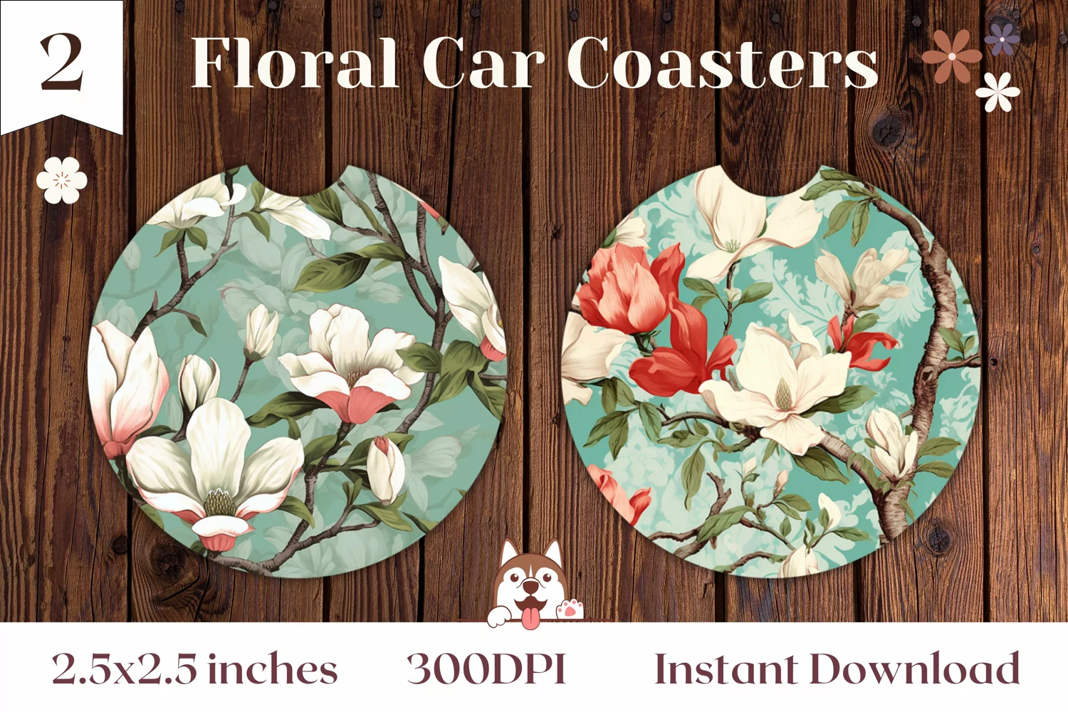Magnolia Car Coaster Template, Flowers Sublimation PNG example image 1