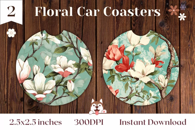 Magnolia Car Coaster Template, Flowers Sublimation PNG