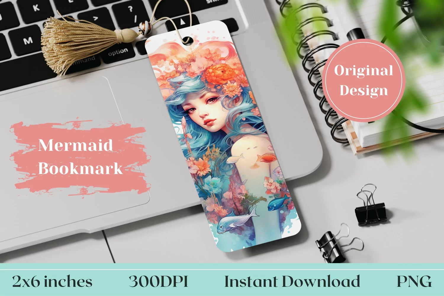 Mermaid Bookmark Printable, Kawaii Mermaid Sublimation example image 1