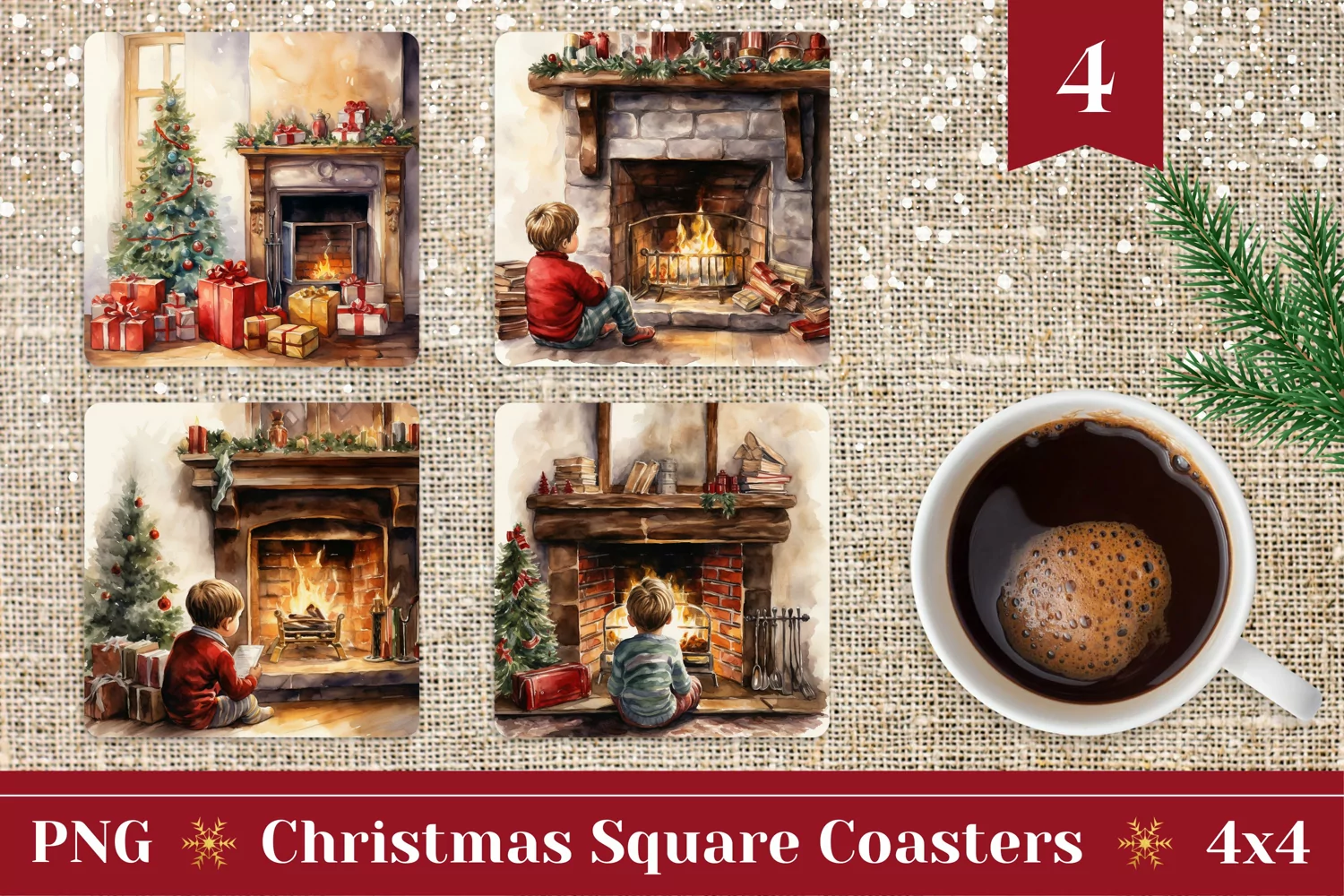 Winter Sublimation Christmas Sublimation Designs Christmas Coasters Christmas Coaster Sublimation Christmas Coaster Design Christmas Fireplace Sublimation Square Coaster Png Watercolor Christmas Fireplace Png Square Christmas Coasters Watercolor Christmas Fireplace Coasters