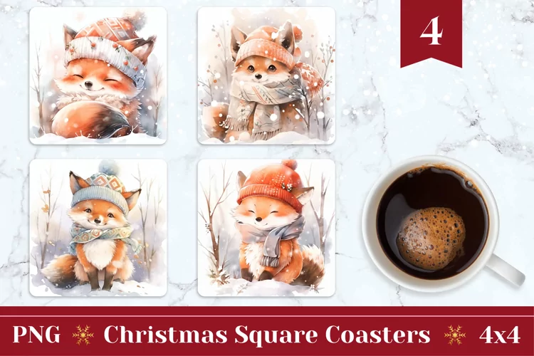 Christmas Sublimation Designs Baby Fox Sublimation Christmas Coaster Sublimation Watercolor Fox Sublimation Square Christmas Coasters Christmas Fox Coaster Watercolor Winter Coasters Watercolor Christmas Coasters Fox Mug Coaster Christmas Coffee Mug Coaster